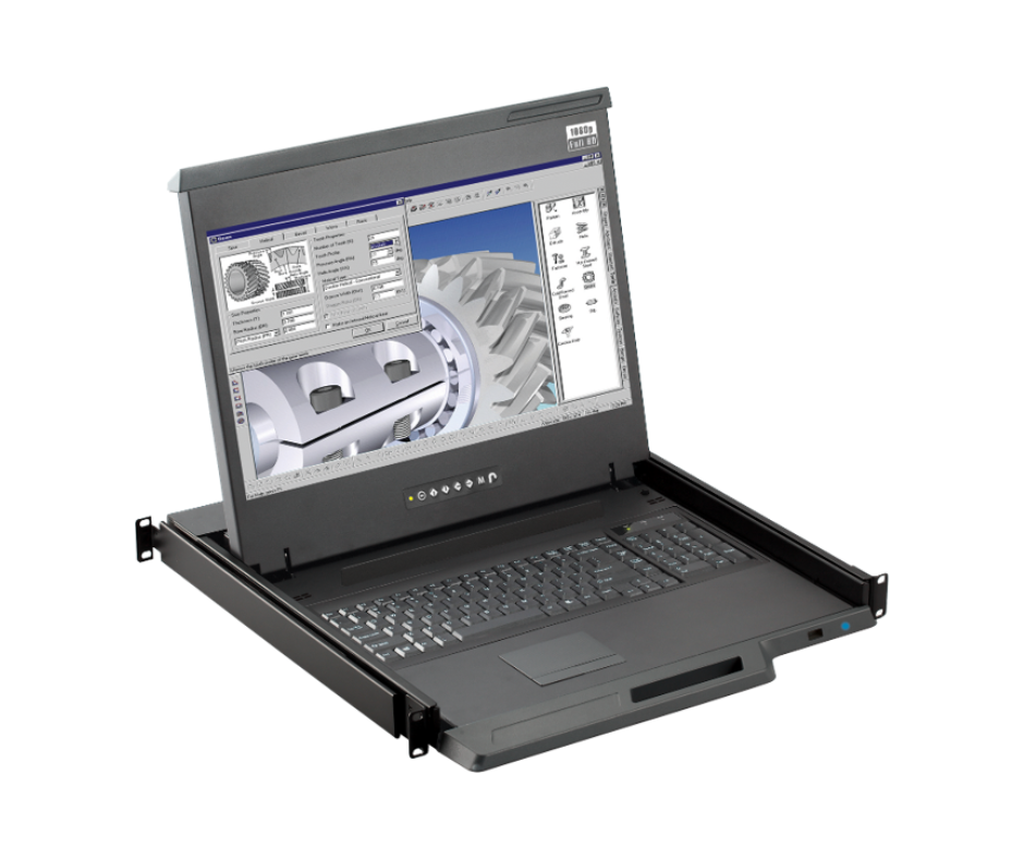 The F117‑802e Rack Console is a professional 1U rack-mounted console featuring a 17″ Full HD (1920×1080) LED display designed for IT environments such as data centers, server racks, and control rooms. The F117‑802e Rack Console combines high-quality display, full keyboard functionality, and an optional integrated KVM. This setup allows IT operators to manage multiple servers or network devices efficiently from a single point of access.