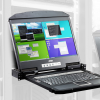 • Integrated KVM console with an 18.5” LED-backlit widescreen LCD monitor in a dual rail housing with top and bottom clearance for smooth operation in a 1U high system rack