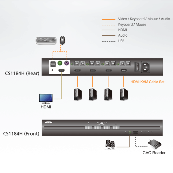 - 1x CS1184H 4-Port USB HDMI Secure KVM Switch