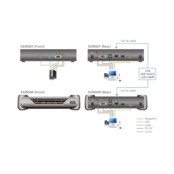 - 1x KE9950R 4K DisplayPort Single Display KVM over IP Receiver