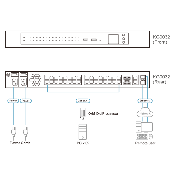 - 1x KG0032 32-Port KVM over IP OmniBus Gateway