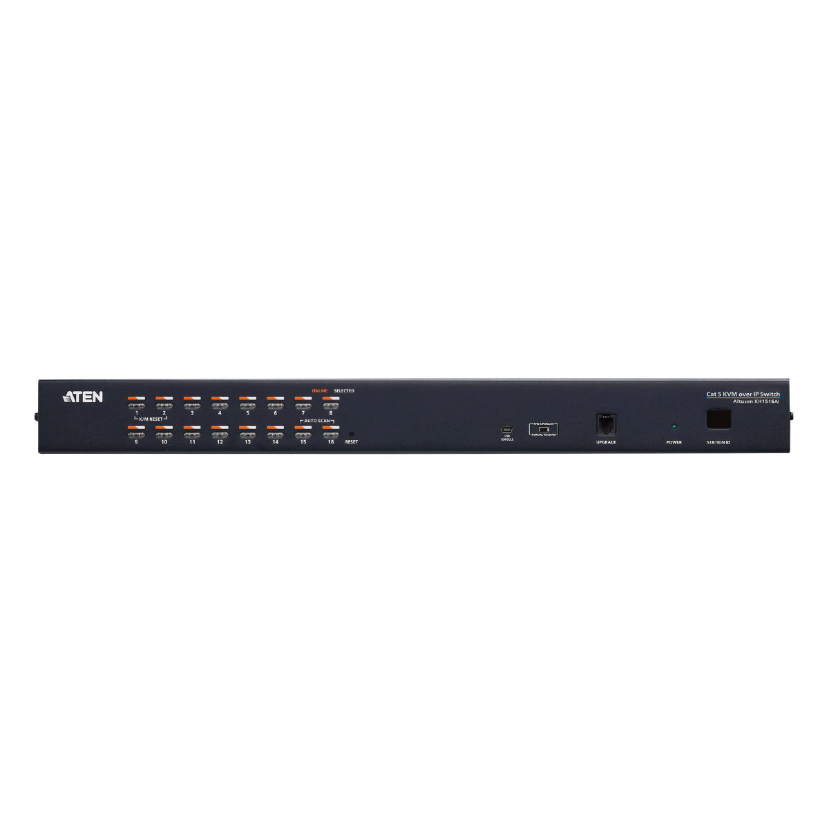 The KH1516Ai Cat 5 High-Density KVM over IP Switch offers 16 computer port configurations in a 1U-high housing for convenient rack mounting. They allow local and remote operators to monitor and access the entire enterprise data center over the Internet using a web-based browser.