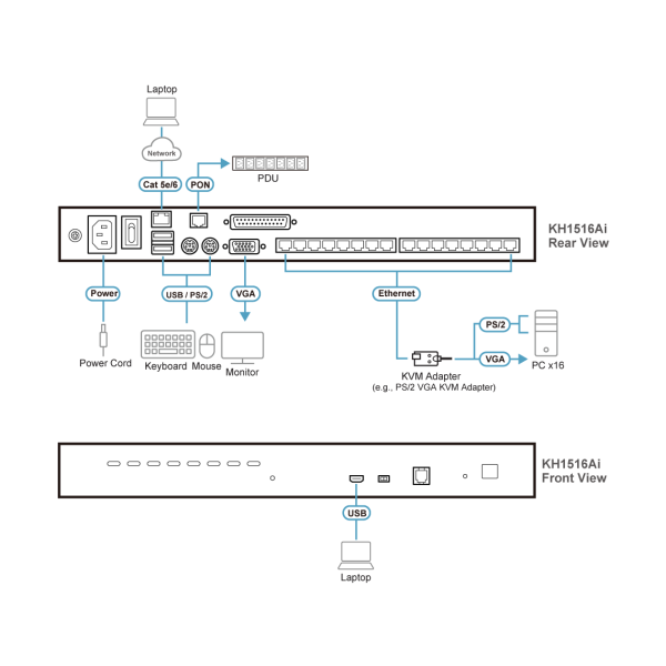 - The KH1516Ai does not support virtual media even when paired with a virtual media-enabled KVM adapter.