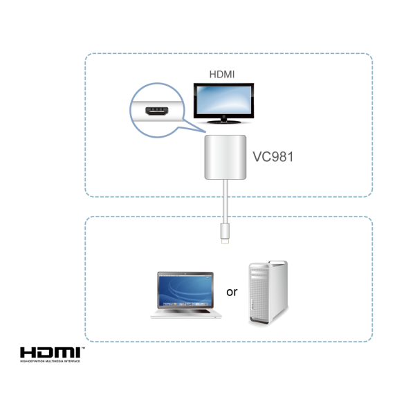 The VC981 is an active Mini DisplayPort to HDMI adapter that allow you to connect your Mini DisplayPort/DisplayPort output device to the HDMI input of a 4K TV or other display.