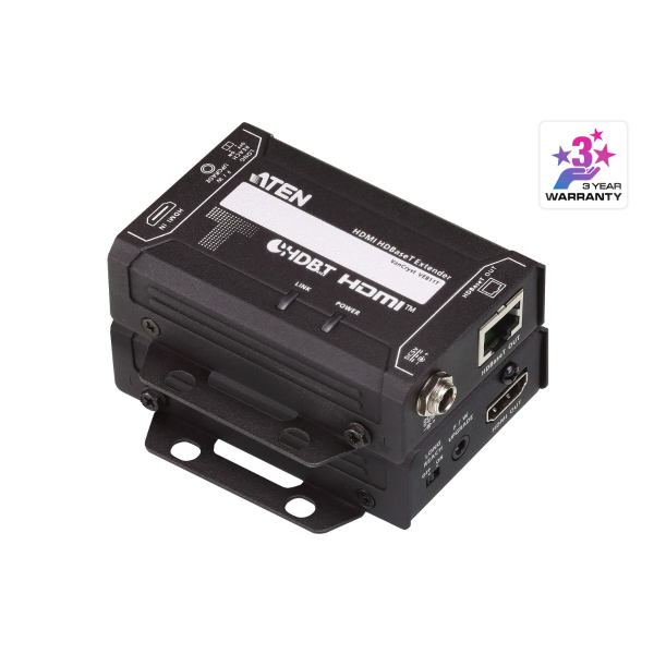 The ATEN VE811 HDMI HDBaseT Extender guarantees the optimum 4K HDMI signal transmission across up to100 m via a single Cat 5e/6/6a or ATEN 2L-2910 Cat 6 cable. In addition, with the support for Long Reach Mode, it extends HDMI signals @ 1080p up to 150 m via a single Cat 5e/6 cable. The VE811 meets HDMI specification features including 3D, Deep Color, HD lossless audio formats and CEC pass-through. Plus, it supports Dolby Digital 7.1 ch and DTS HD audio.