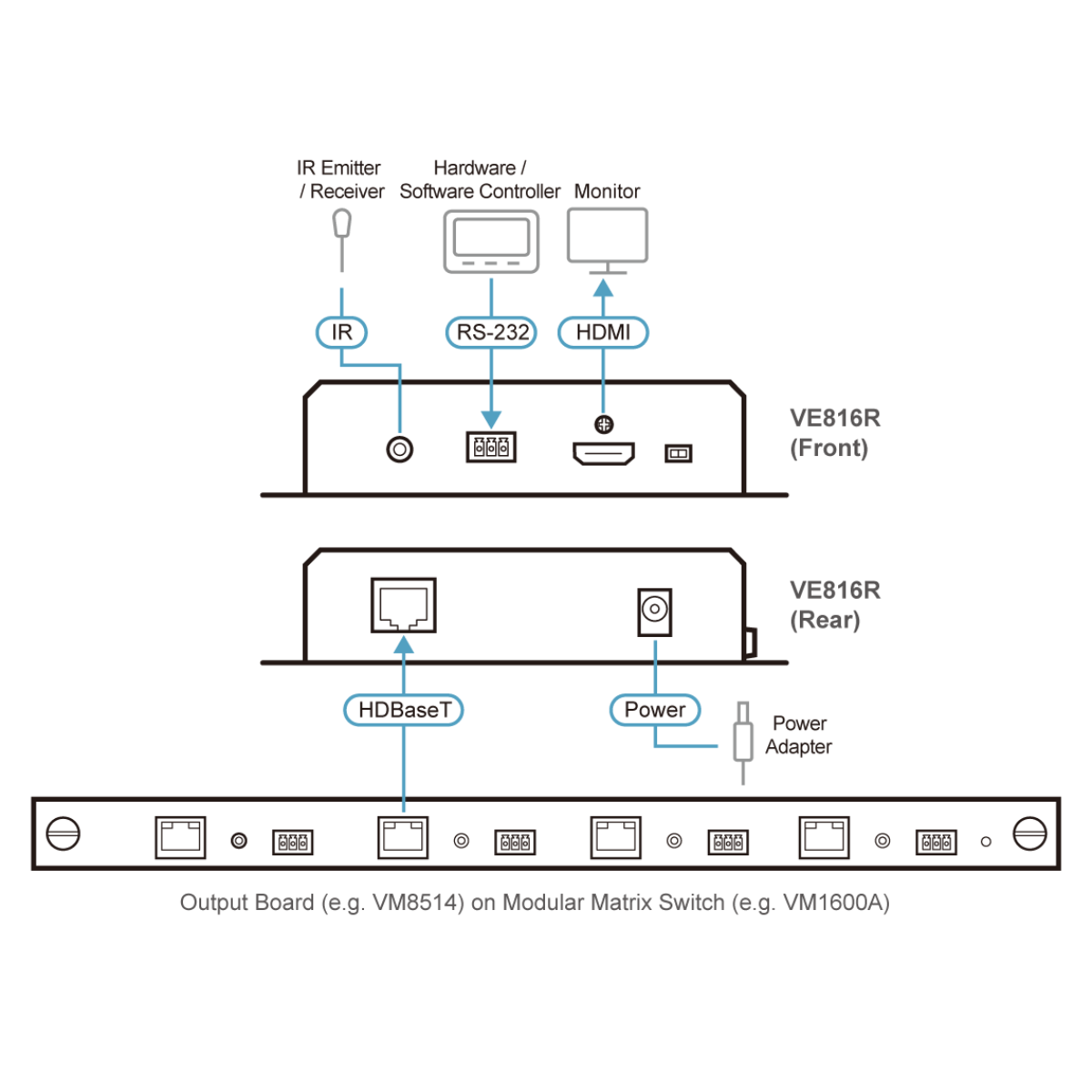 - 1x VE816R 4K HDMI HDBaseT Receiver with Scaler