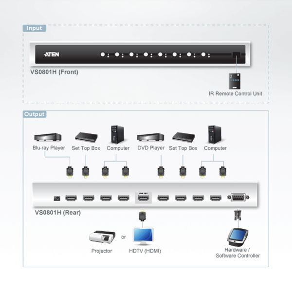 - 1x VS0801H 8-Port HDMI Switch