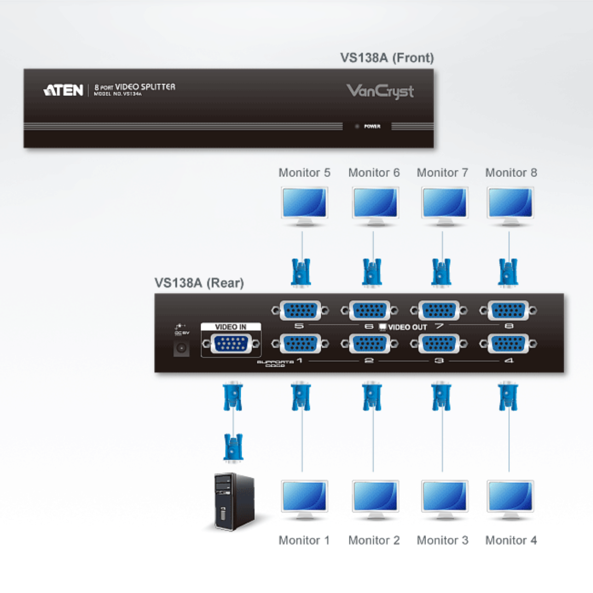 - 1x VS138A Video Splitter
