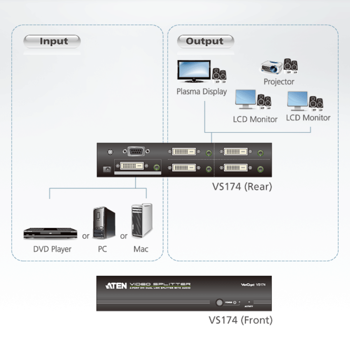 - 1x VS174 4-Port DVI Dual Link Splitter with Audio