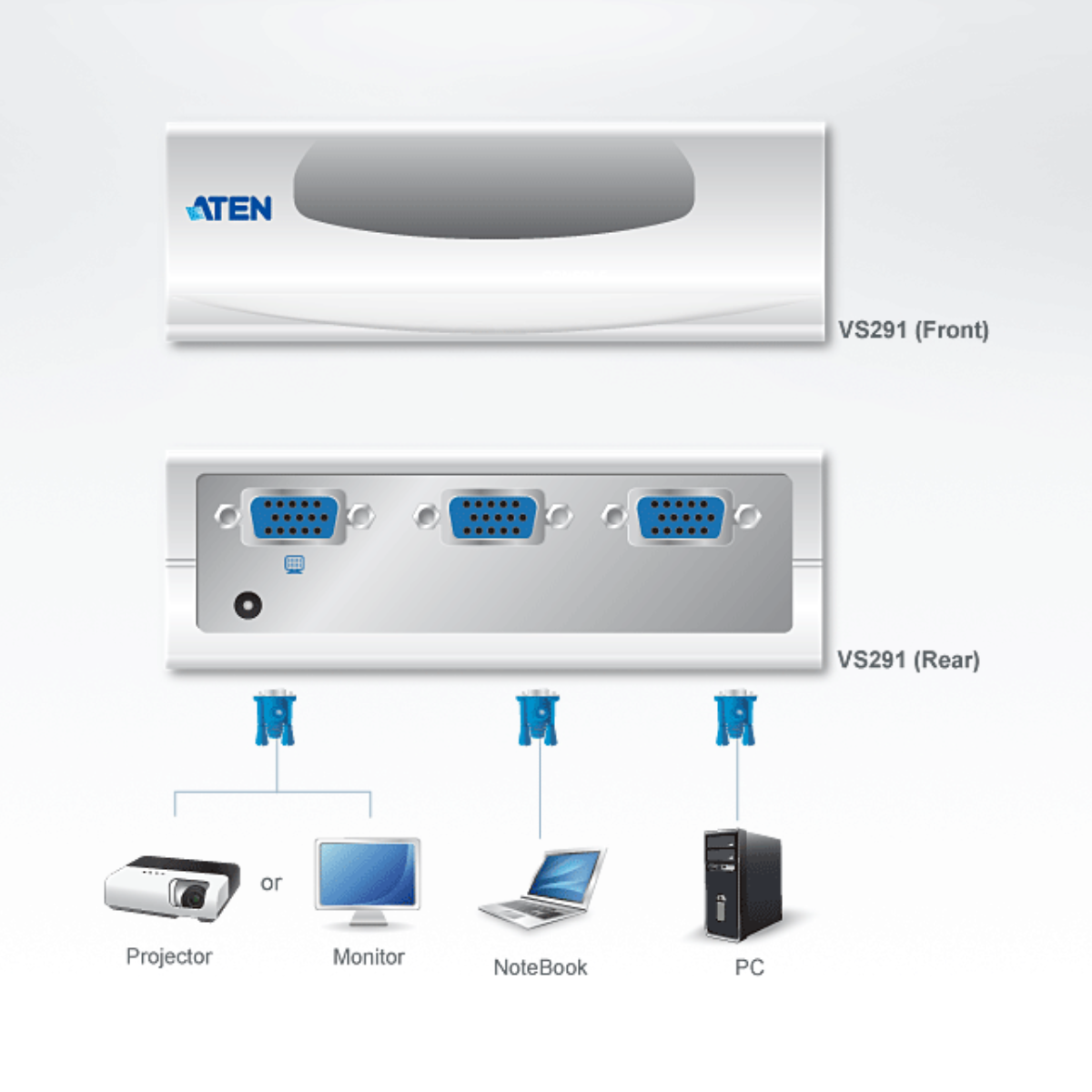 The VS291 is a video switch with 2 ports. It allows 2 independent computers to display their video outputs on a single monitor. Therefore, users will not need to buy monitors for each computer additionally.