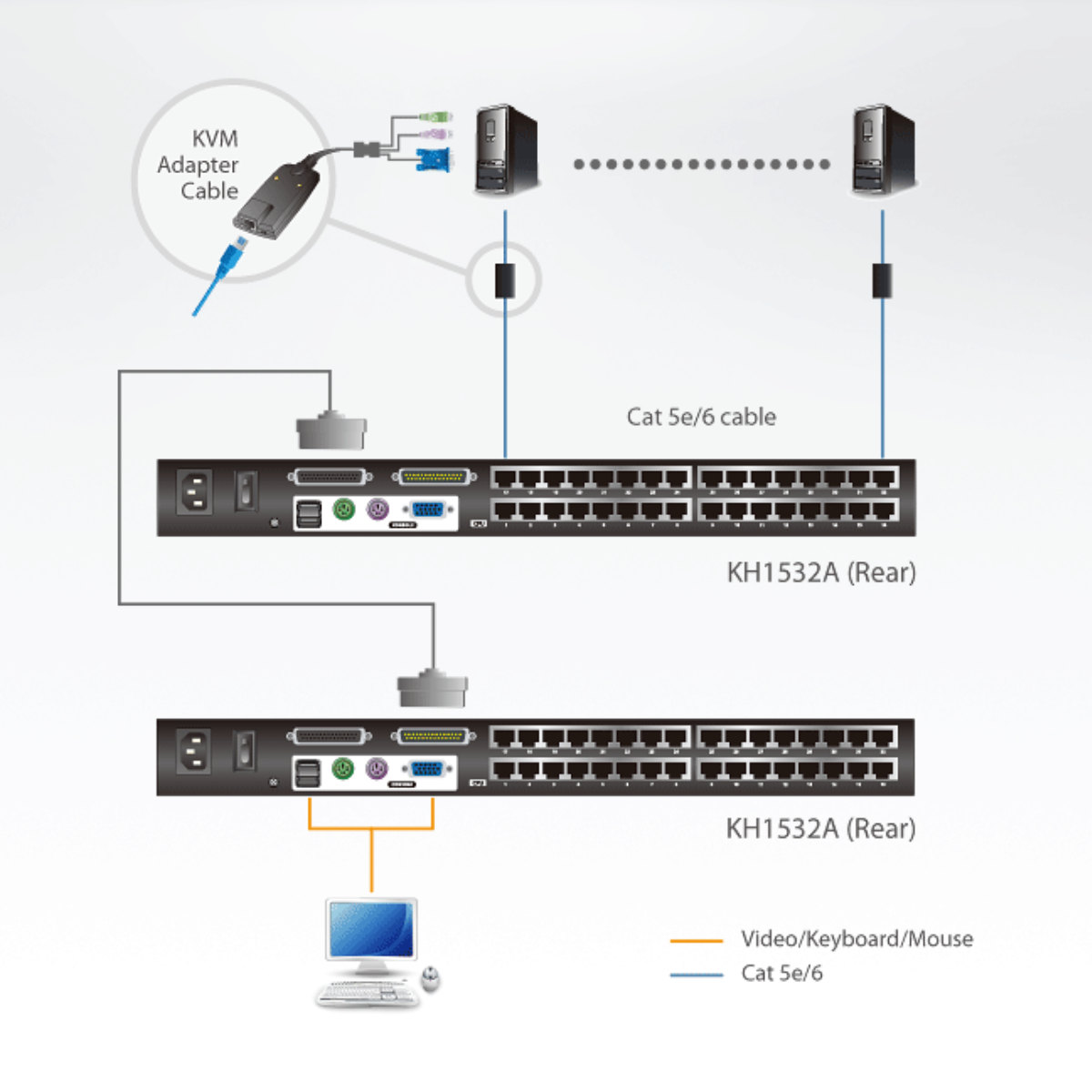 - 1x KH1532A Cat 5 High-Density KVM Switch