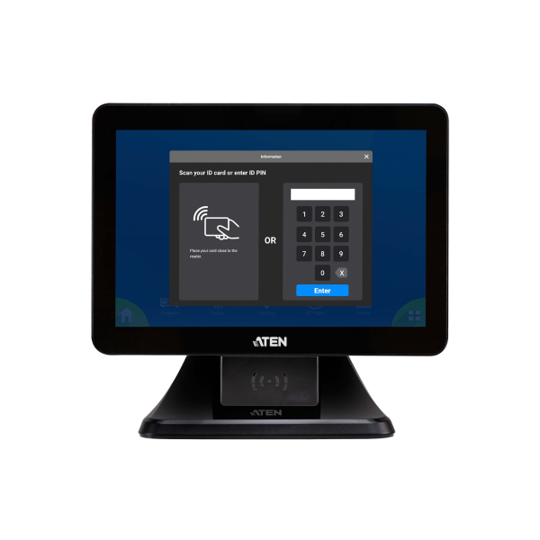 The ATEN VK330 is a 10.1” Touch Panel, featuring capacitive multi-touch TFT-LCD screen. Natively installed with the ATEN Control System app, the touch panel is compatible with ATEN Control Box and Control Pad. In conjunction with the VK401, the system enables exclusive card-access functionality. This allows authorized users to efficiently book and check in meeting rooms, thereby contributing to the streamlined automation of conference room operations.