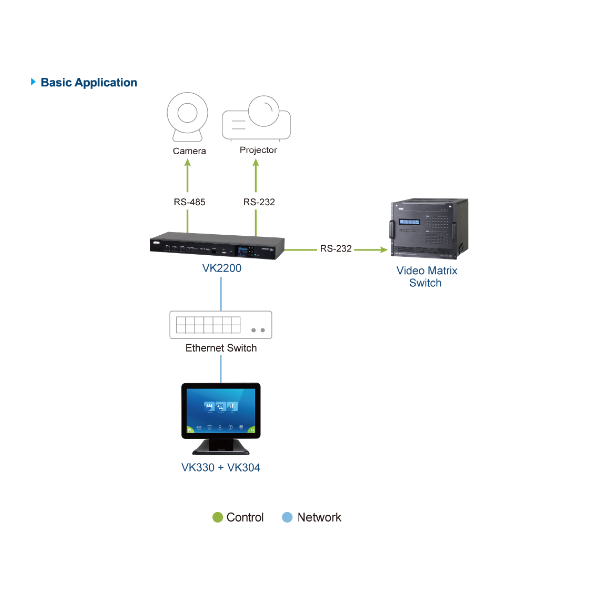 The ATEN Control System is a standard Ethernet-based management system consisting of controllers, expansion boxes, configurator, and control interfaces that connects all hardware devices to provide centralized control of devices directly and effortlessly from any mobile device or ATEN Control System interface. Now we have the VK330 touch panel join the ATEN Control System family to make our control system solution complete and that meets the demanding requirements for the target applications.