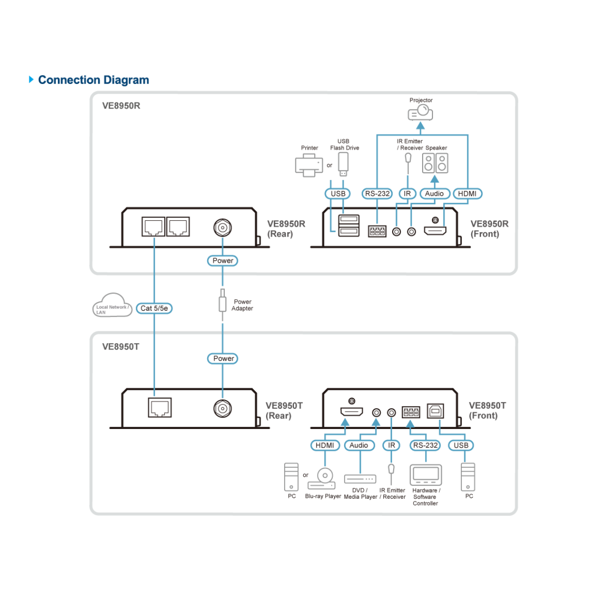 Engineered to meet today’s demands of large scale, multi-display, 4K signal transmission, and designed to be easy to set up and operate, the VE8950R Video over IP Receiver is an ideal product for a wide range of environments, such as trade shows, airports, university campuses, conference centers, and shopping centers.