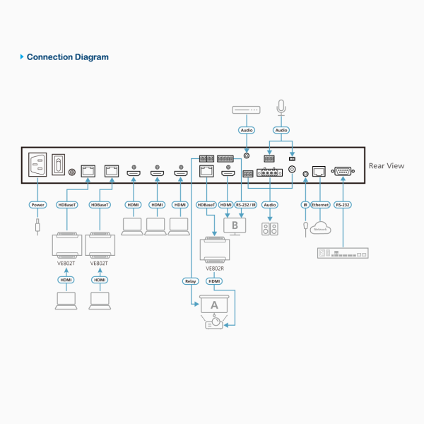 - 1x VP3520 5 x 2 True 4K Seamless Presentation Matrix Switch with Control