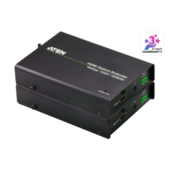 The VE882 is an Optical HDMI Extender that overcomes the length restriction of standard HDMI cables by using optical fiber to send high definition audio and video signals over large distances.