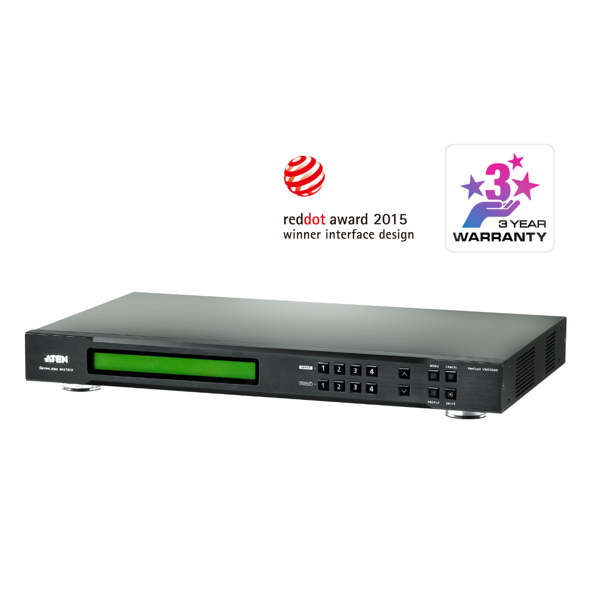 The VM5404D includes seamless switching that employs an FPGA matrix architecture to ensure continuous video streaming, real-time control and stable signal transmission. With a built-in high-performance scaler, the VM5404D easily converts various input resolutions into a array of output resolutions, giving viewers the best image quality across all displays. The switch also integrates video wall functionality with an easy-to-use web GUI that lets you create 8 connection profiles for convenient layout customization.