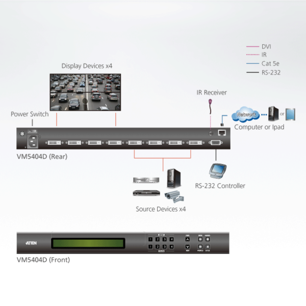 - 1x VM5404D 4 x 4 DVI Matrix Switch with Scaler