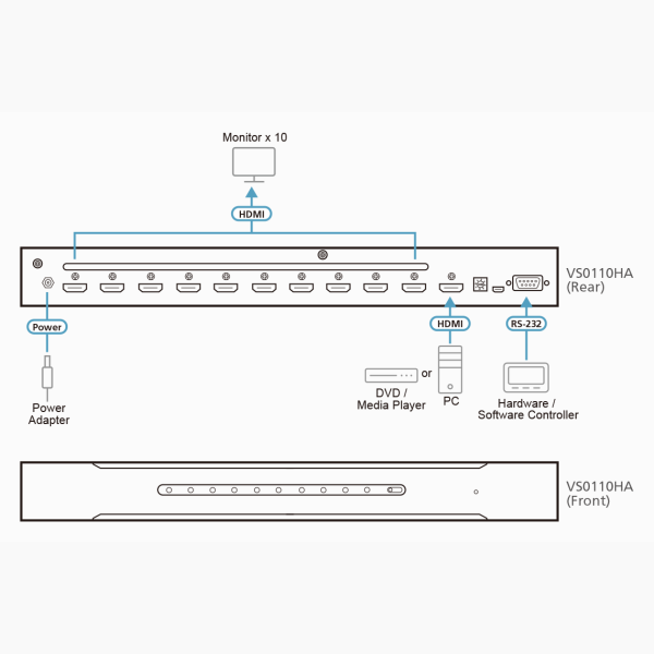 - 1x VS0110HA 10-Port 4K HDMI Splitter