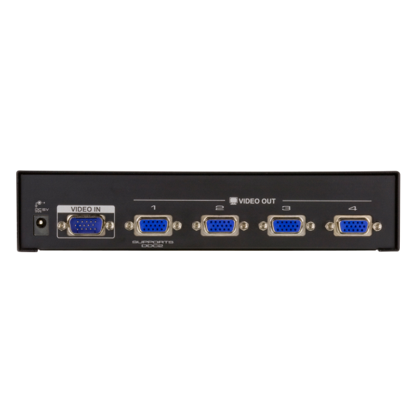 The VS134A Video Splitter is a boosting device that duplicates a video signal from one source to 4 output devices. Cascadable to three levels, the VS134A provides up to 64 video signals, in addition to extending transmission distance up to 30 m, making it excellent for public broadcast systems.
