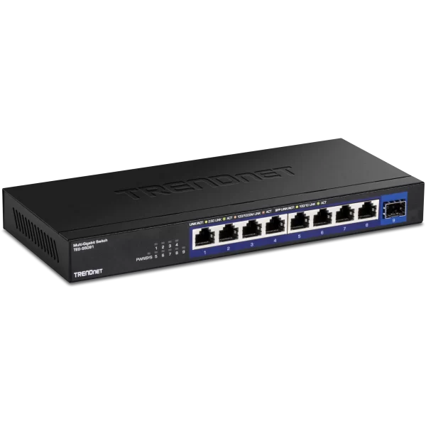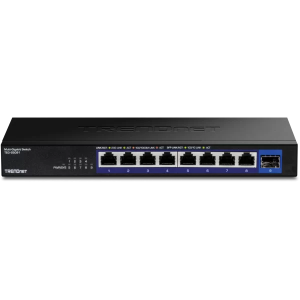 Expand your network’s bandwidth and reduce digital bottlenecks with TRENDnet’s 9-Port 2.5G Unmanaged Switch with 10G SFP+ Port. This 2.5G switch with an SFP+ port comes equipped with 2.5GBASE-T RJ-45 ports that provide speeds capable of up to 2.5Gbps over your existing Cat5e or better cabling, and a 10G SFP+ slot for ultra-fast, long-distance fiber networking. Each 2.5G switch with an SFP+ port features a durable metal enclosure and can be mounted to the wall for setup flexibility. The fanless design lowers energy consumption and eliminates operating noise. TRENDnet’s reliable 2.5G Ethernet switches with a 10G SFP+ port are cost-effective solutions to increase your network’s throughput.
